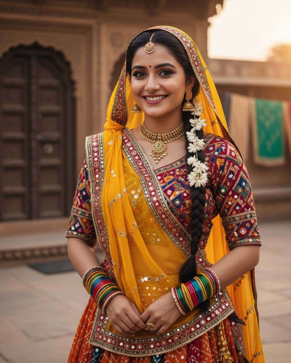 I was hesitant to buy a traditional Gujarati saree online, but the pictures were so accurate and the fabric quality is stunning